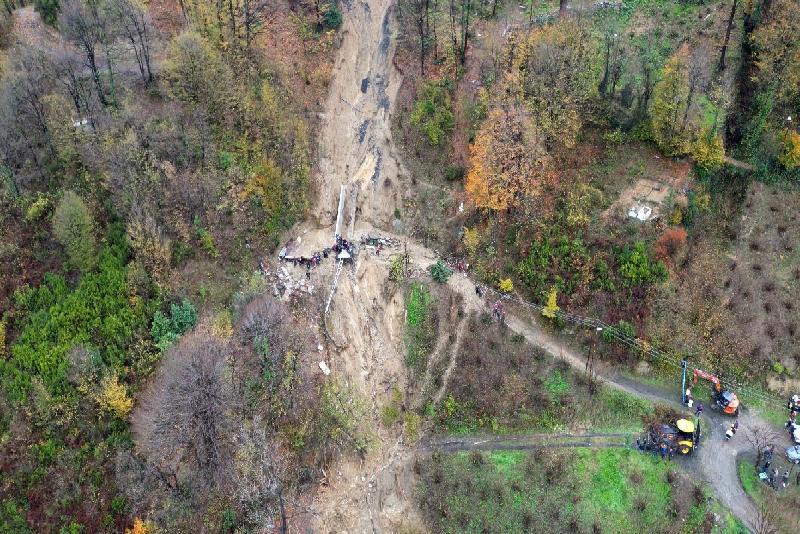 Yılmaz Çakar’ın annesi ve ağabeyine mezar olan evin bulunduğu bölgede yürütülen arama kurtarma çalışmaları ise havadan görüntülendi.