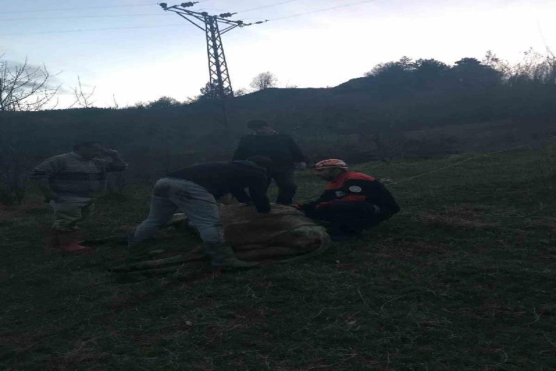 Dik arazi nedeniyle bölgeye Karabük İl Özel İdaresine ait iş makinesi istenirken, açılan yolun ardından kurtarılan inek kepçeyle bölgeden tahliye edildi. Kurtarılan inek sahibine teslim edildi.