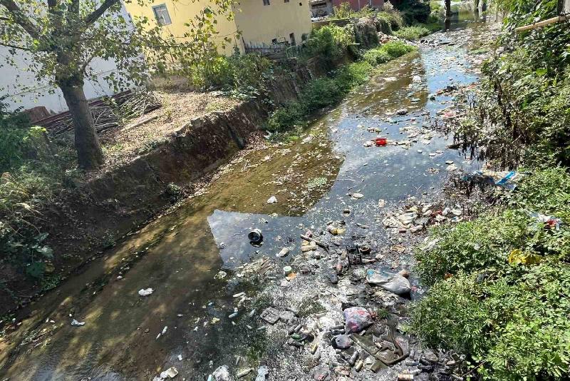 Alaplı Mollabey Köyünden geçen dere; gelişi güzel bırakılan atıklar nedeniyle adeta çöplüğe döndü.