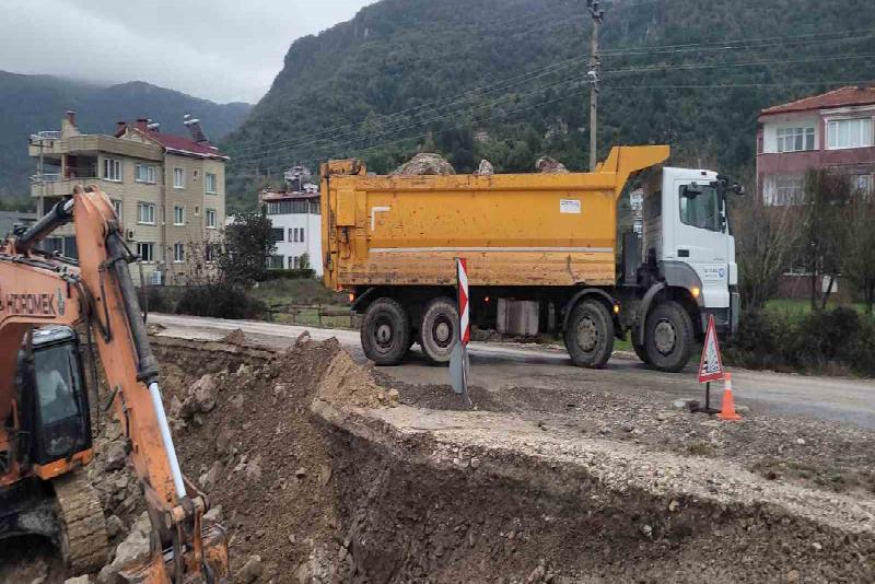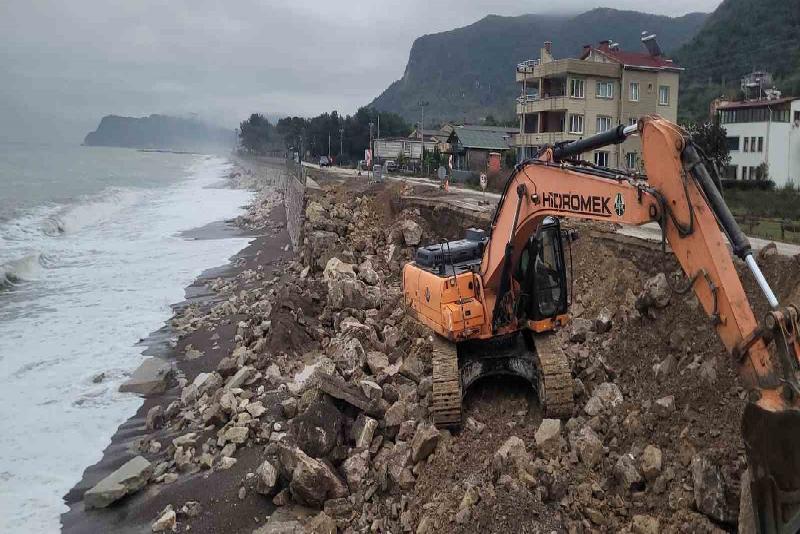 Kastamonu’nun Cide ilçesinde dev dalgalar sebebiyle yıkılan istinat duvarının onarılması için çalışma başlatıldı.