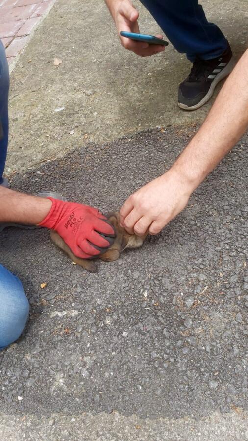 Devrek’te yol kenarında bulunan tilki yavrusu, Doğa Koruma ve Milli Parklar (DKMP) görevlilerine teslim edildi.