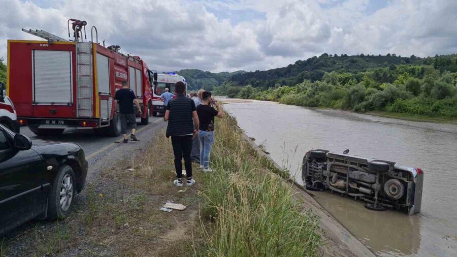 Zonguldak’ın Alaplı ilçesinde çaya uçan araçta 1 kişi yaralandı.