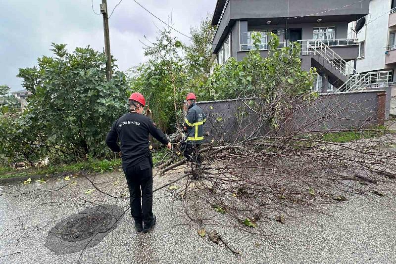 Meteoroloji Genel Müdürlüğü tarafından yapılan turuncu kodlu uyarının ardından Düzce’de yer yer saatte 100 kilometreye ulaşan fırtına ile mücadele devam ediyor. Bazı bölgelerde devrilen ağaçlar yolları trafiğe kapatınca, Düzce Belediyesi İtfaiye Müdürlüğü ekipleri ağaçları kaldırma çalışması yaptı. Fırtına sebebi ile bazı binaların çatılarından kopan parçalar yine itfaiye ekiplerince bulundukları bölgeden kaldırıldı. Ekipler şehrin dört bir yanında saha çalışmasına ise aralıksız devam ediyor.