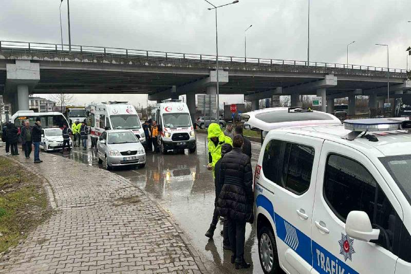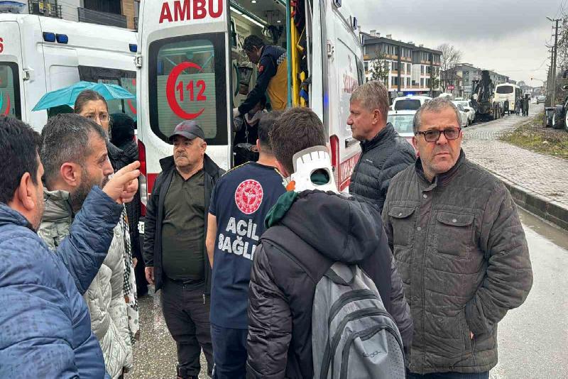 Kaza, şehirlerarası otobüs terminali kavşağında meydana geldi. Alınan bilgilere göre, Erol Ö. idaresindeki Beyköy Belediyesi’ne bağlı 81 DS 405 plakalı halk otobüsü, Aziz Yıldırım Bulvarı yönüne giden Kemal A. idaresindeki 81 DB 044 plakalı iş makinesi ile çarpıştı. Kazayı görenlerin 112 Acil Çağrı Merkezine yaptığı ihbar üzerine bölgeye sağlık ve polis ekipleri sevk edildi. Kazada otobüs şoförü Erol Ö. (62) ile 7 yolcu yaralandı. Yaralılar ambulanslarla Düzce’deki çeşitli hastanelere kaldırılarak tedavi altına alındı. Kaza nedeniyle kısa bir süre kapanan yol, araçların kaldırılmasının ardından normale döndü.