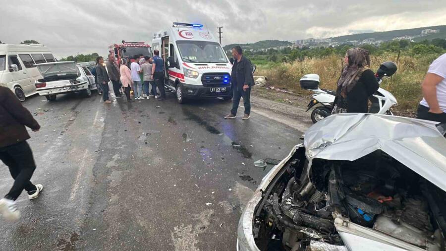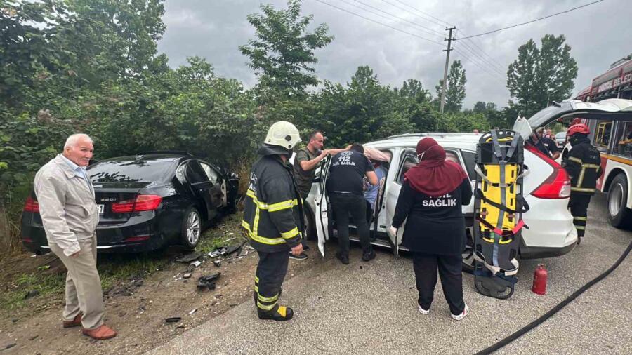 Düzce’de iki farklı noktada meydana gelen ve 5 aracın karıştığı trafik kazalarında toplam 7 kişi yaralandı.