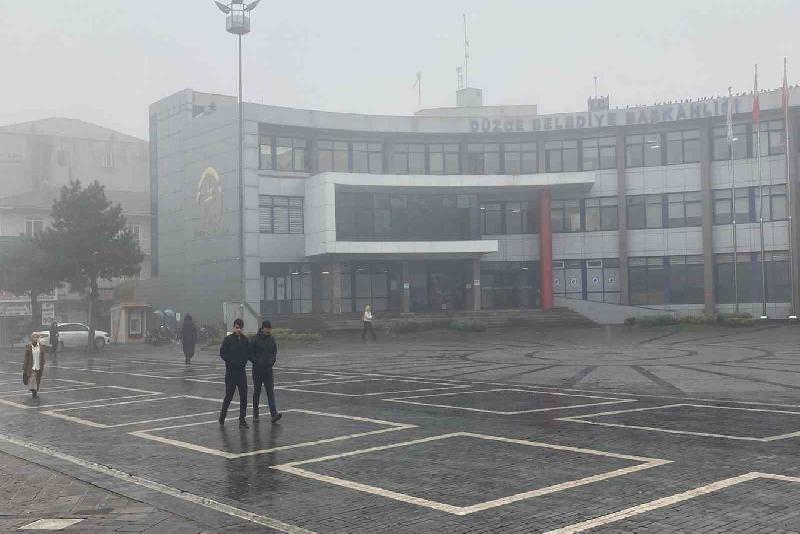 Düzce’de etkili olan sis, kent merkezinde görüş mesafesini 20 metreye kadar düşürdü.