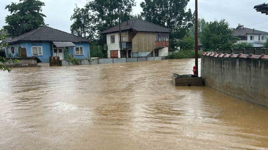 Batı Karadeniz Bölgesi’nde iki gündür aralıklarla yağan şiddetli yağışlar etkili oluyor. Düzce merkeze bağlı Gündolaması köyünde de gece saatlerinden itibaren başlayan sağanak yağış ile köyün içinden geçen dere taştı. Taşkınla beraber köyün merkezi sular altında kaldı. Bölgede birçok evi su basarken, vatandaşlar köy meydanından tahliye edildi.