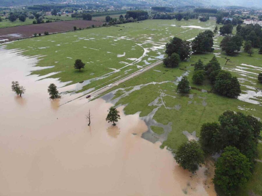 Doğal güzelliği ve bulunduğu konum ile 150’den fazla göçmen kuş türüne ev sahipliği yapan Efteni Gölü, etkili olan sağanak yağış sonrası taştı. Gölyaka ilçesinde bulunan Kültür Park’a kadar taşan Efteni Gölü’nün çevresindeki tarımsal araziler de sular altında kaldı. Kent merkezine 25 kilometre uzaklıkta bulunan Efteni Gölü, dron ile havadan da görüntülendi.
