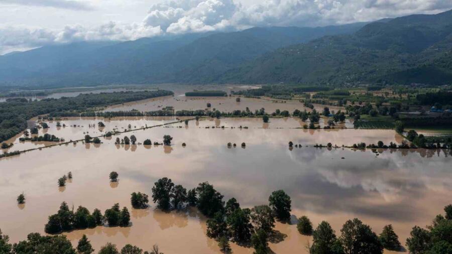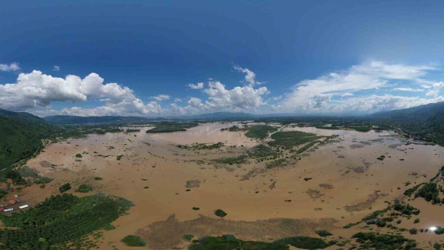 Düzce’de yağışın ardından adeta sular altında kalan kentin önemli turizm merkezlerinden Efteni Gölü, havadan görüntülendi.