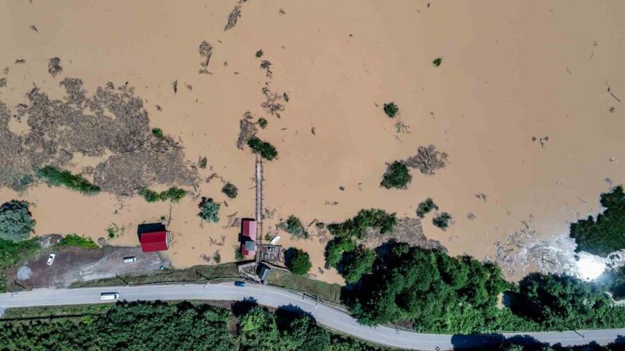 Batı Karadeniz Bölgesi’ni etkisi altına alan ve 2 gündür aralıklarla devam eden sağanaktan Düzce’de birçok ilçe olumsuz etkilendi. Bazı bölgelerde derelerin taşması neticesinde evlerin giriş katlarında su baskını yaşandı, yollar sular altında kaldı. Sağanak, yaklaşık 150 kuş türüne ve endemik bitkilere ev sahipliği yapan Efteni Gölü’nü de etkiledi. Kentin önemli turizm merkezilerinden biri olan Efteni Gölü, yağışlar sonrası doldu taştı. Her gün çok sayıda vatandaşın durduğu ve bol bol fotoğraf çektiği iskelede çökerek, sular altında kaldı. Efteni Gölü, havadan dron ile de görüntülendi.