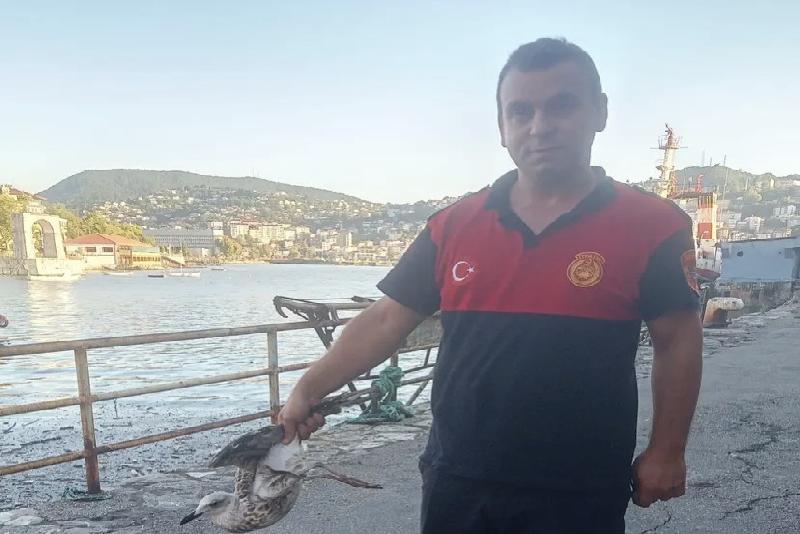 Zonguldak limanında elektrik tellerine takılan martının imdadına itfaiye ekipleri yetişti.