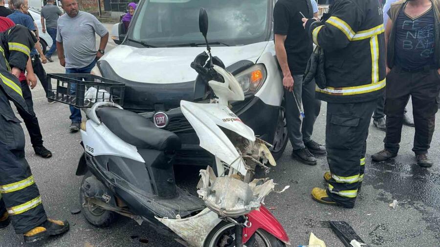 DÜZCE (İHA) – Düzce’de ters şeritten gelen elektrikli bisiklet, yola çıkış yapmak isteyen hafif ticari araca çarptı. Çarpışmanın etkisi ile aracın altında kalan sürücüyü itfaiye ekipleri kurtardı.