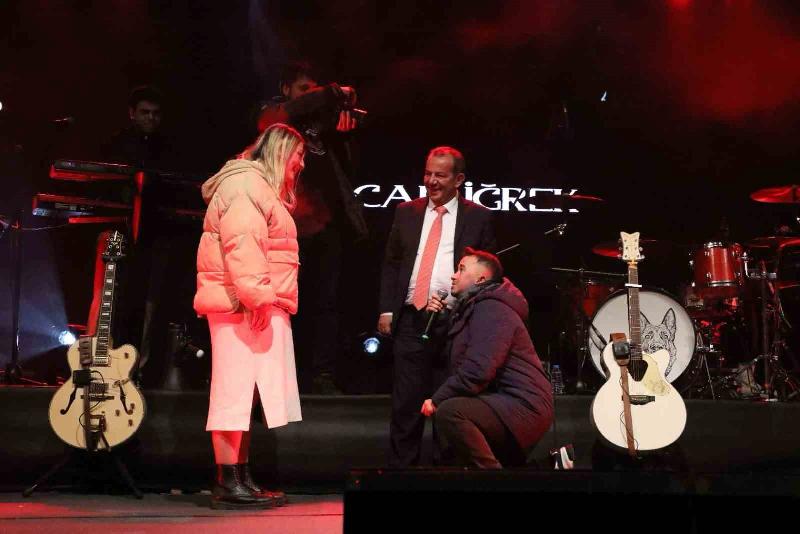 Konserde ayrıca, evlilik telifi sürprizi de yaşandı. Konsere gelen bir genç, Bolu Belediye Başkanı Tanju Özcan’ın yardımı ile sahneden kız arkadaşına evlilik teklifi etti. Binlerce kişinin alkışları ve tezahüratları eşliğinde diz çöküp kız arkadaşına “Benimle bu hayatı paylaşır mısın?” diye sordu. Genç kızın “Evet” cevabı üzerine çift büyük mutluluk yaşadı. Özcan da genç çifte sarılıp tebrik etti.