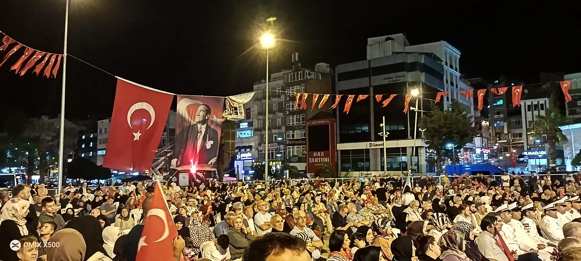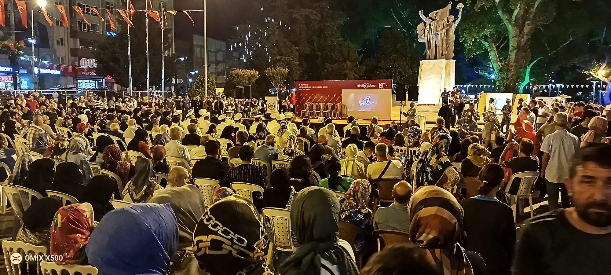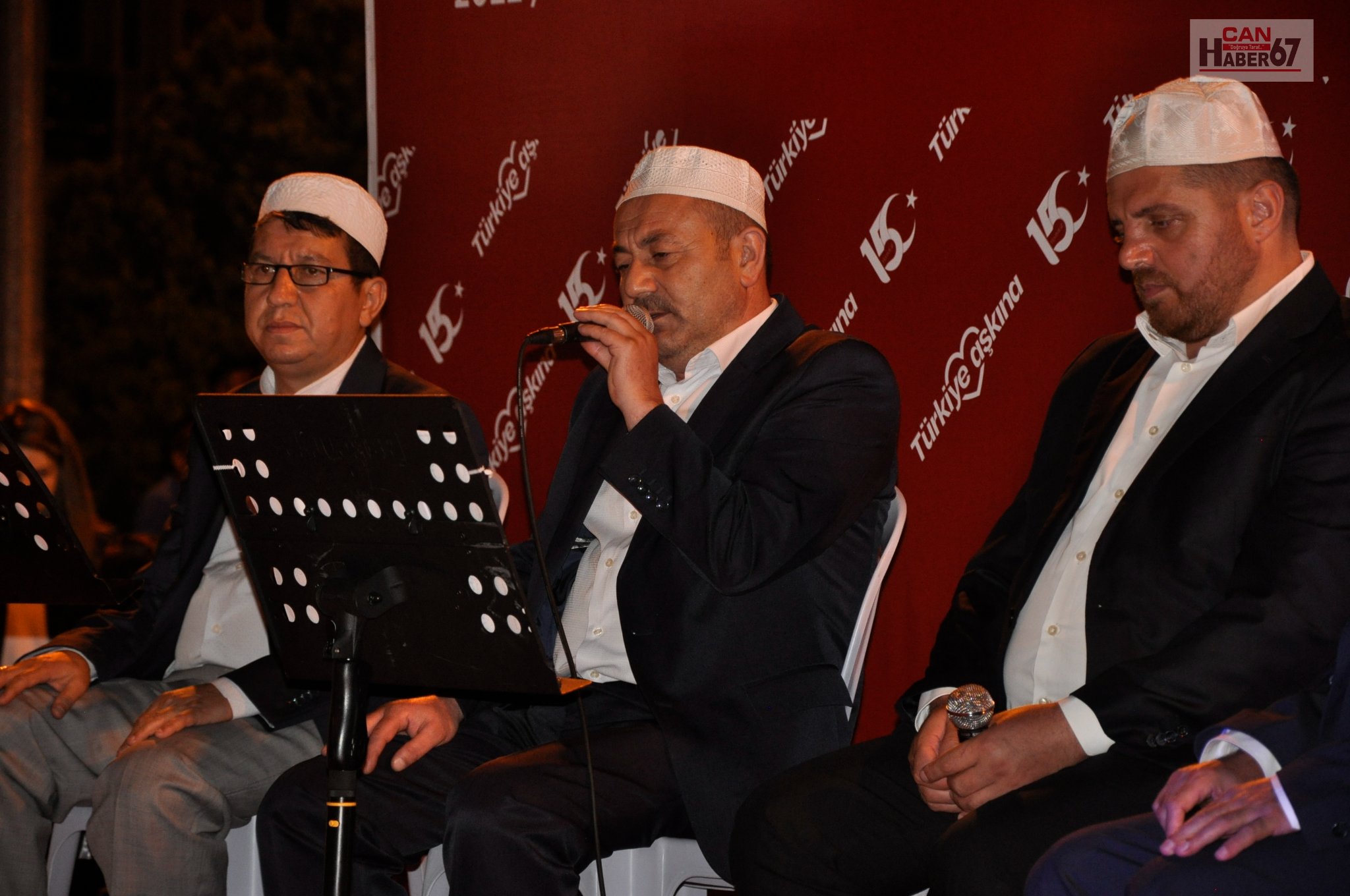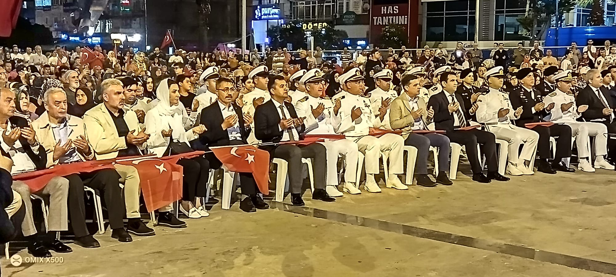 Törende saygı duruşunda bulunuldu, İstiklal Marşı söylendi. Kuran’ı Kerim ve salâ okunmasının ardından dua edildi. Cumhurbaşkanı ve AK Parti Genel Başkanı Recep Tayyip Erdoğan’ın ulusa seslenişi de, alana kurulan dev ekrandan izletildi.