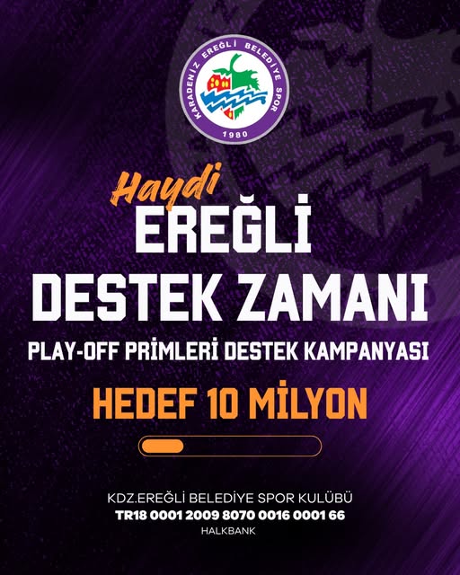 Nesine 3. Lig 3. Grup’ta sezon boyunca sergilediği performansla dikkat çeken Kdz. Ereğli Belediyespor, gözünü bir üst lige dikti. 23 yıl aradan sonra gelen bu büyük heyecanı taçlandırmak isteyen kulüp yönetimi, “Play-Off Primleri Destek Kampanyası”nı hayata geçirerek taraftara ve iş dünyasına çağrıda bulundu.