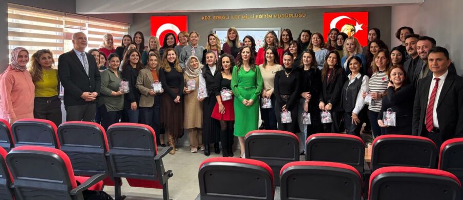Kdz. Ereğli İlçe Milli Eğitim Müdürlüğü salonunda gerçekleştirilen kutlama programına; İlçe Milli Eğitim Müdürü Harun Akgül, Şube Müdürleri Ü. Gülsüm Balbey Dedeşah, Reşat Atar, Gökhan Şen ve Yakup Sarıgül ile ilçedeki resmi ve özel okullarda görev yapan kadın müdürler, müdür yardımcıları ve müdürlük personeli katıldı.