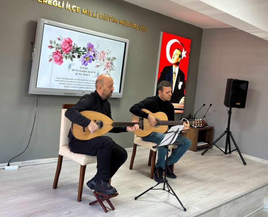 Zonguldak’ın Karadeniz Ereğli ilçesinde, İlçe Milli Eğitim Müdürlüğü tarafından düzenlenen programla 8 Mart Dünya Kadınlar Günü kutlandı. Programda müziğin yanı sıra duygusal anlar da yaşandı.