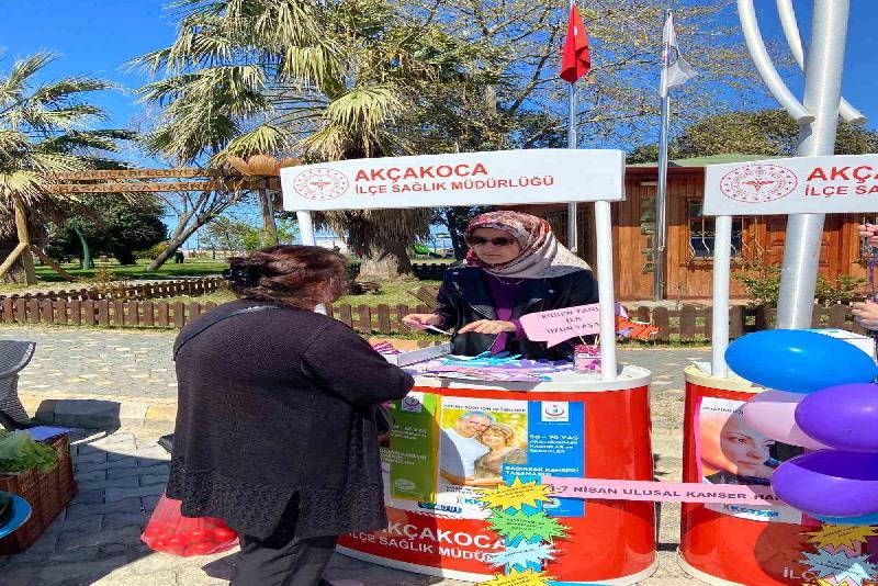 DÜZCE(İHA) – Düzce’nin Akçakoca ilçesinde Sağlık Müdürlüğü Sağlıklı Yaşam Merkezi personelleri yöresel pazarda kanser farkındalığı oluşturdu.