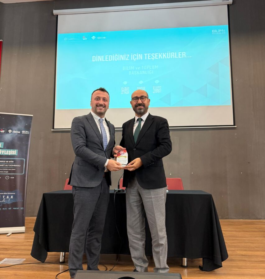 TÜBİTAK’ın “Bilimle toplumu buluşturma” vizyonu doğrultusunda gerçekleşen etkinlikte, Prof. Dr. Dombaycı’nın derinlikli anlatımı öğrencilere ilham kaynağı oldu. Programın sonunda, değerli sunumları ve katkıları için Sayın Hocamıza teşekkür plaketi ve çiçek takdim edildi.