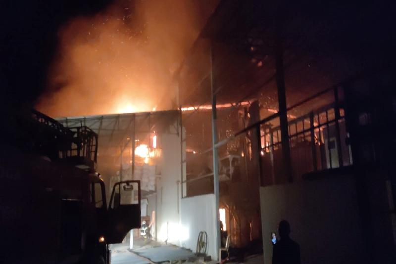 Düzce’nin Akçakoca ilçesinde gece saatlerinde çıkan yangında fındık fabrikası alev alev yandı.