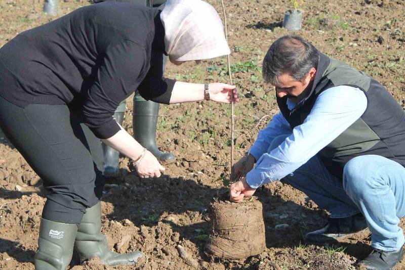 Kurulacak örnek fındık bahçesinde gerçekleşen fındık fidanı dikimine Tarım ve Orman İl Müdürü Esra Uzun, Düzce Üniversitesi Orman Fakültesi DÜFAM Müdürü Doç. Dr. Şemsettin Kulaç, Ticaret Borsası Genel Sekreteri Dursun Kara ve fındık üreticisi Özcan Baylan katıldı.