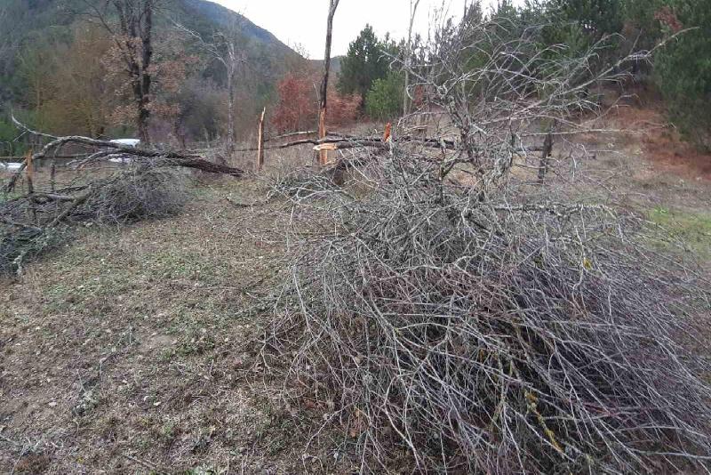 Köydeki vatandaşlar ağaçların kaldırılması için çalışma başlattı.