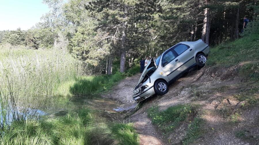 Türkiye’nin doğa harikası mekanlarından biri olan Bolu Abant Gölü Milli Parkı’nda sürücüsünün el frenini çekmeyi unuttuğu otomobil göle uçtu.