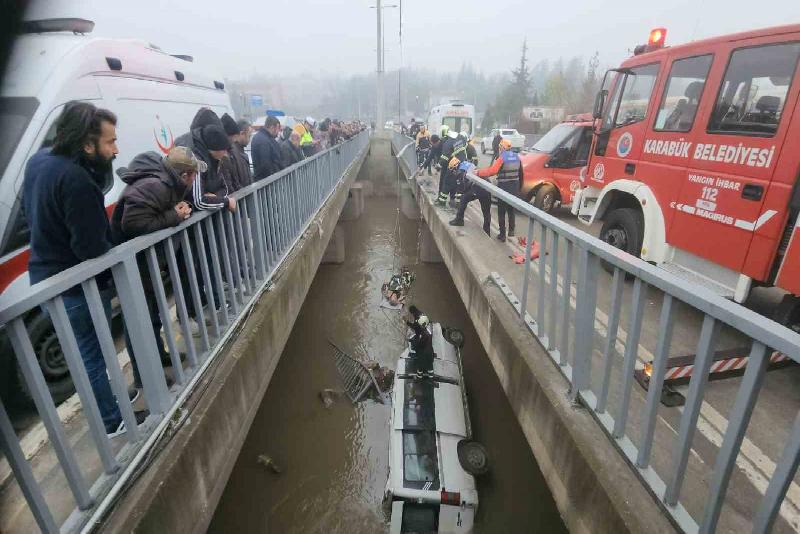 Edinilen bilgiye göre kaza, sabah 08.20 sıralarında kent merkezi girişindeki demir çelik köprüsünde meydana geldi. Pazarcılık yapan Süleyman Aysan (59) idaresindeki 78 BH 672 plakalı minibüsü ile demirçelik kavşağında dönüş yaptığı sırada iddiaya göre frenlerinin boşalması sonucu köprü korkuluklarını kırarak Araç çayına uçtu. Yan vaziyette suya batan aracın sürücüsü boğulmaktan son anda kurtularak aracından çıkarak yardım bekledi. Kazayı fark eden diğer sürücülerin ihbarı sonucu olay yerine polis, sağlık, itfaiye ve AFAD ekipleri sevk edildi. İtfaiye ekipleri halat merdivenle indikleri yerden yaralı sürücüyü sedyeye alarak itfaiye merdiveni yardımı ile yukarıya çıkardı. Olay yerinde sağlık ekiplerinin ilk müdahalesinde bulunduğu sürücü Aysan, araçta tek olduğunu ve biranda frenlerinin boşaldığını söyledi.