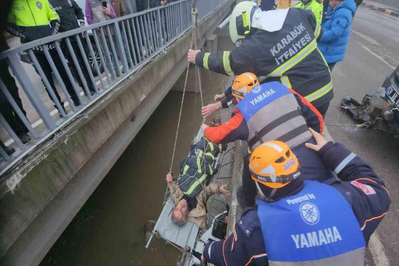 Karabük’te sabah saatlerinde kavşaktan döndüğü sırada frenleri boşalan minibüs demirçelik köprüsünün korkuluklarını kırarak Araç çayına uçtu. Kazada yan vaziyette suya batan aracın sürücüsü yaralı olarak itfaiye ekiplerinin çalışmaları ile kurtarıldı.