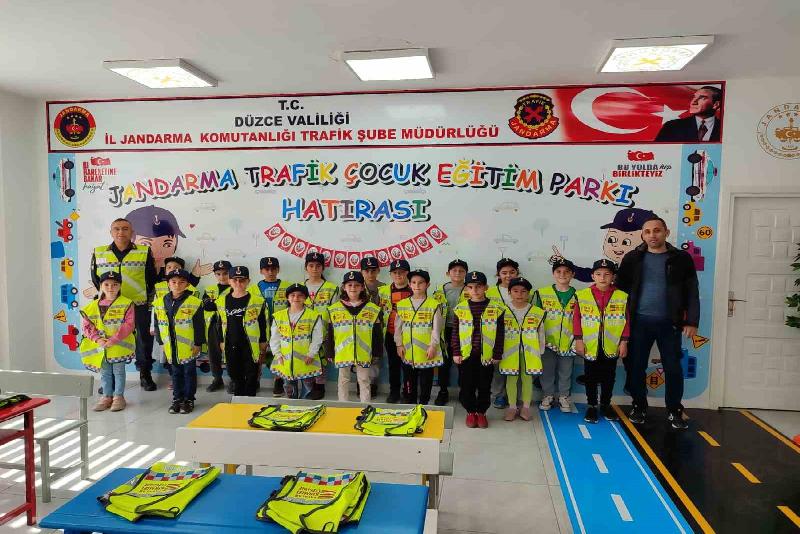 DÜZCE(İHA) – Geleceğin sürücüleri olacak Esenli Köyü İlkokulu öğrencileri Melen Park Çocuk Jandarma Trafik Eğitim alanında trafik kurallarını öğrendi.
