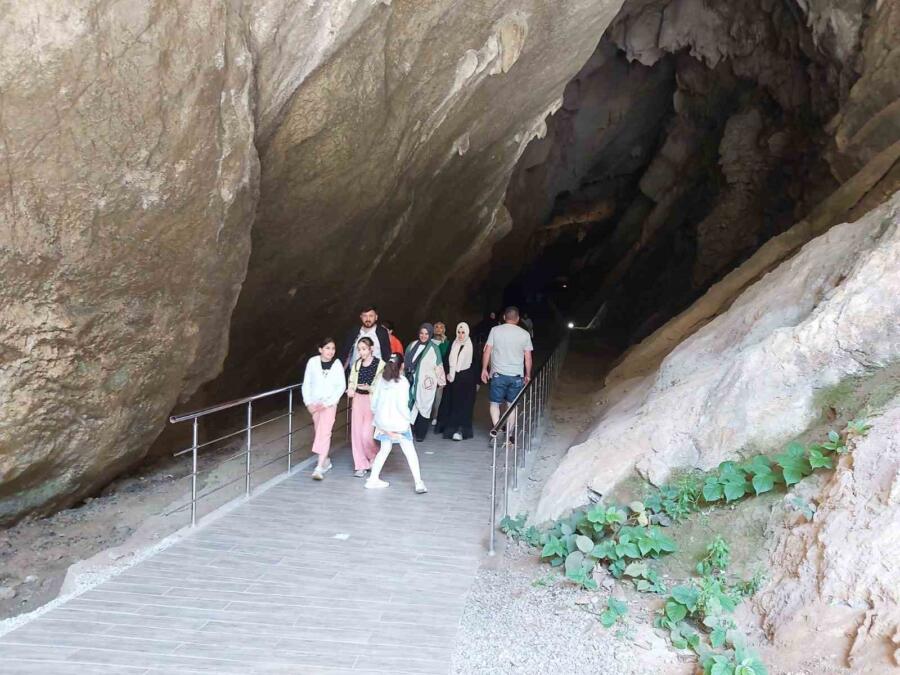 Türkiye’nin en uzun 10’ncu ve 875 metrelik yürüyüş yoluyla gezi alanı en büyük mağarası olan, içinden dere geçen Gökgöl Mağarası 9 günlük bayram tatilinde on bine yaklaşan ziyaretçi sayısıyla adeta ziyaretçi akınına uğradı.