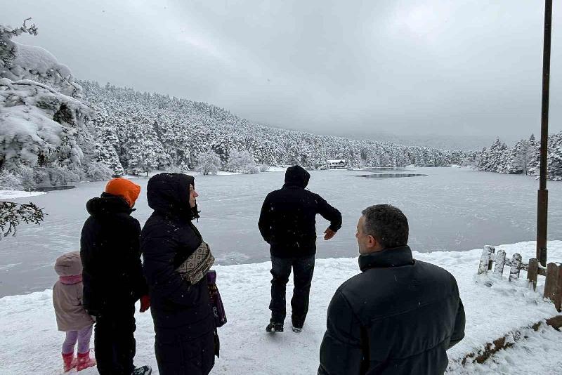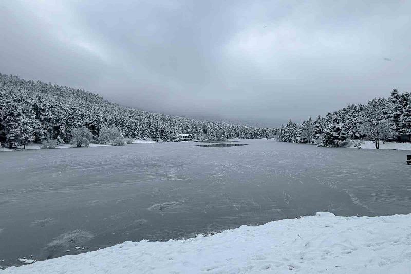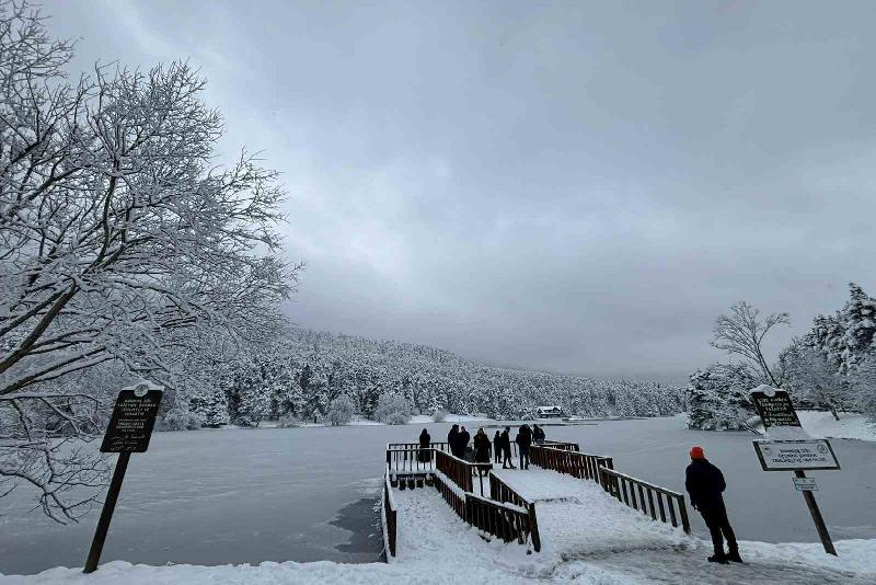 Bolu’da geçtiğimiz gün etkili olan kar yağışı sebebiyle Gölcük Tabiat Parkı’nda kar kalınlığı 15 santimetreye ulaştı. “Bolu’nun incisi” olarak tabir edilen Gölcük’te hava sıcaklığının günlerdir sıfırın altında seyretmesinden dolayı göl yüzeyi buz tuttu. Etrafı ormanlarla çevrili olan tabiat parkının oluşturduğu manzara görenleri mest etti.
