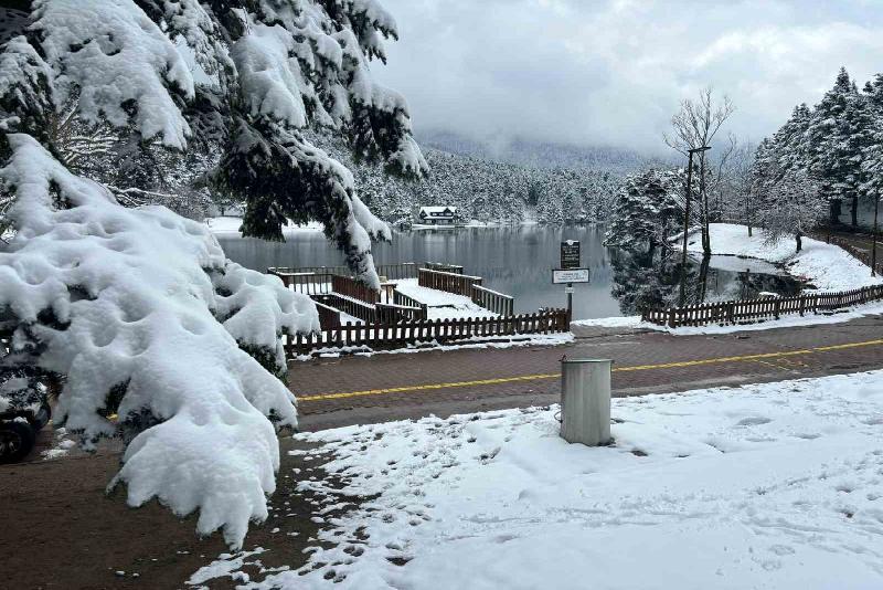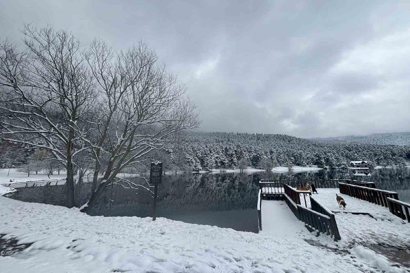 Bolu’nun doğal güzellikleriyle ünlü Gölcük Tabiat Parkı Mart ayında beyaz örtüyle kaplandı. Yeşil alanlarda kar kalınlığı 10 santimetreye ulaştı.