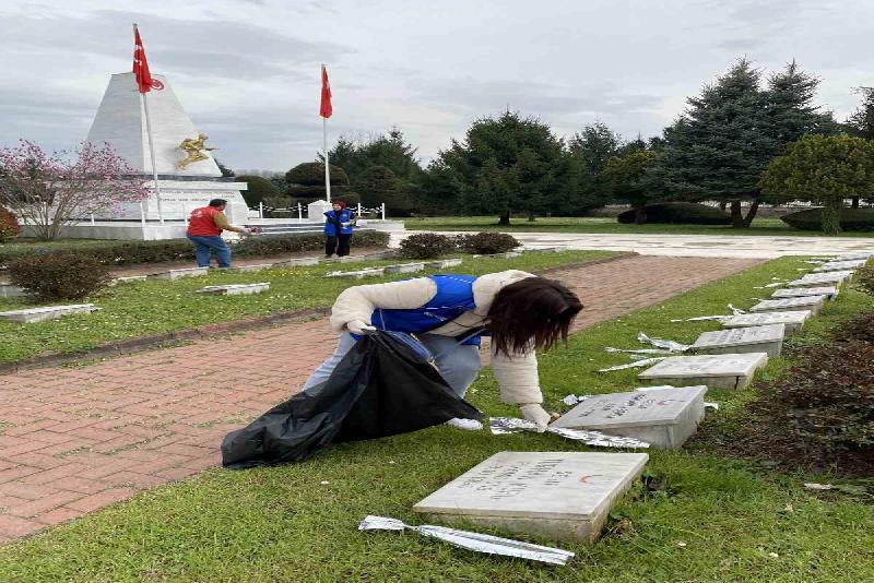 Düzce Bahçeşehir Gençlik Merkezi, şehir mezarlığında temizlik çalışması gerçekleştirdi.