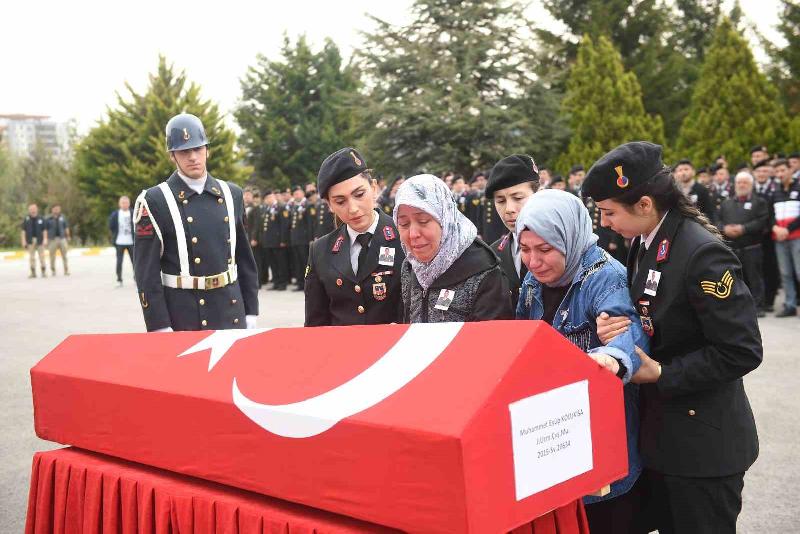 Kastamonu’da görevi başında kalp krizi geçirerek hayatını kaybeden Jandarma Uzman Çavuş Muhammet Eyüp Kolukısa için tören düzenlendi. Uzman çavuşun annesi, oğlunun fotoğrafını öperek Türk bayrağına sarılı tabutun başında gözyaşı döktü.
