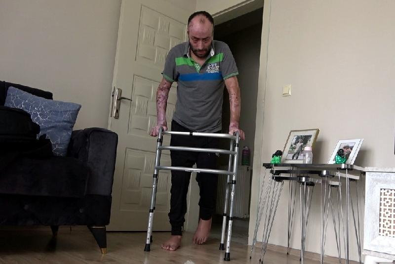 Patlamada ağır yaralanan İzzet Ak, 1 yıllık tedavi sürecinde ise 140 ameliyat geçirdi. 10 ameliyat daha olması gerektiğini anlatan İzzet Ak, “Toplamda 6 ay yoğun bakımda, 2.5 ay serviste tedavi gördüm. Toplam 8.5 ay hastanede kaldım. Sağ gözüm görmüyor gibi bir şey, sol gözüm de yüzde 40-50 oranında görüyor. Bir metre önümü göremiyorum yani. Ellerimi kullanamıyorum. Eldiven eridiği için parmaklarım kilitlenmiş, bükülü kalmış. Sol ayağımda kırık var. Yatmaktan ayak kaslarım hasar görmüş. Yeni yeni kendine gelmiş, bastonla zorla yürüyorum. Fazla gidemiyorum, evin içerisinde ancak yürüyebiliyorum. Dışarıda gezemiyorum. Sol kulağım yanma nedeniyle yapışık kalmış. Eşim olmasa işim kötü. Yanık servisindeki doktorum 140 ameliyat geçirdiğimi söylemişti. 12 ayda ellerimizden, parmaklarımızdan ameliyat olacağız. Sonra ayaklarım, gözlerim var. Daha tedavi sürecimiz uzun. 3-4 yıllık bir süreç var. Yaklaşık 10 ameliyat daha gözüküyor ama Rabbim büyük” ifadelerini kullandı.
