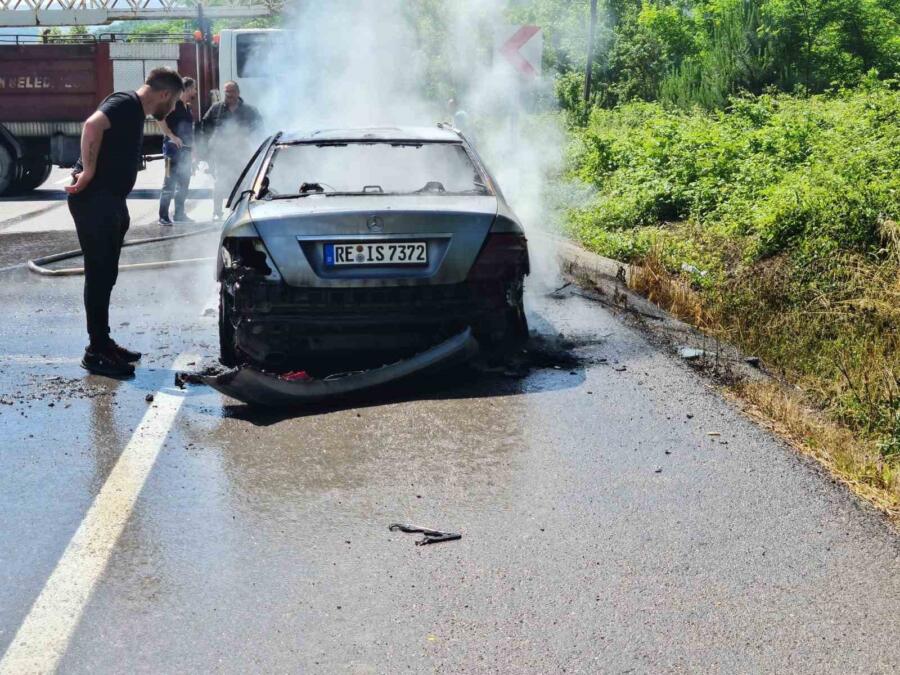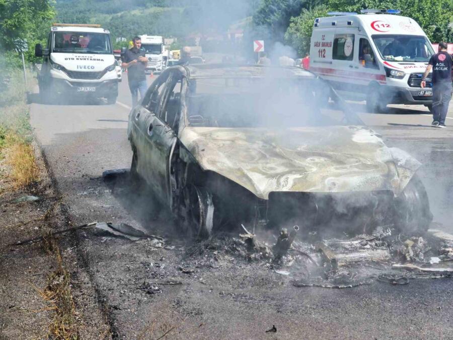 Olay, Ankara-Zonguldak karayolunda meydana geldi. Edinilen bilgiye göre, Karaman mevkiinde gurbetçi Ş.İ. hakimiyetindeki RE İS 7372 plakalı Mercedes marka araç kısa sürede henüz nedeni bilinmeyen şekilde alev aldı. İhbar üzerine olay yerine sağlık ve itfaiye ekipleri sevk edildi. Araçtan dökülen motorin yüzünden yolda alev çizgisi oluştu. Kısa sürede olay yerine gelen itfaiye ekipleri yangını kontrol altına alabilmek için çalışma başlattı. Araç kullanılamaz hale geldi. Gurbetçinin ve ailesinin durumunun iyi olduğu söylendi.