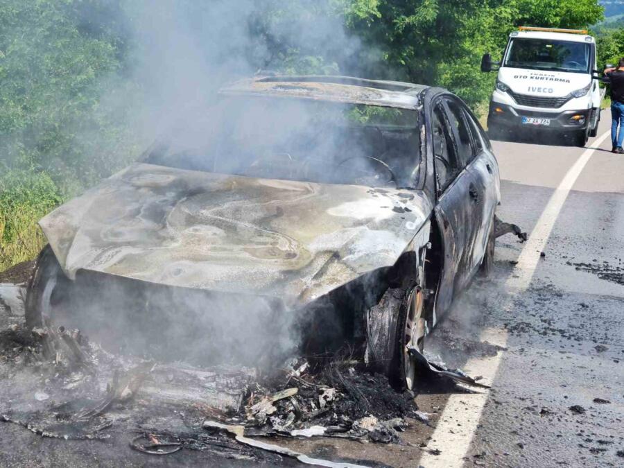 Zonguldak’ın Karaman beldesinde gurbetçinin aracı bilinmeyen bir nedenle alevlere teslim oldu.