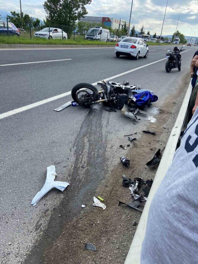 D-100 karayolunda hafif ticari araca çarpan motosiklet sürücüsü yolun ters istikametine fırladı. Hafif ticari araç savrularak refüjdeki tellere çarptığı kazada 3 kişi yaralandı.