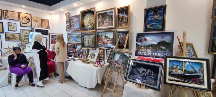 Karadeniz Ereğli Halk Eğitim Merkezi’nde çeşitli dallarda eğitim gören kursiyerlerin yıl boyunca emekle ortaya çıkardıkları ürünler Atatürk Kültür Merkezi’nde açılan sergi ile halkın beğenisine sunuldu.
