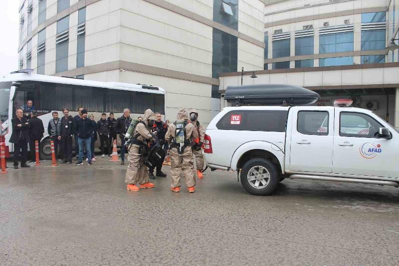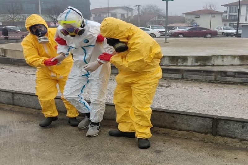 DÜZCE(İHA) – Düzce Atatürk Devlet Hastanesinde kimyasal maddeden etkilenen hastane personelini Kimyasal, Biyolojik, Radyolojik, Nükleer (KBRN) ekibi tarafından anında müdahale edilerek izolasyon ünitesine alındığı tatbikat gerçeğini aratmadı.