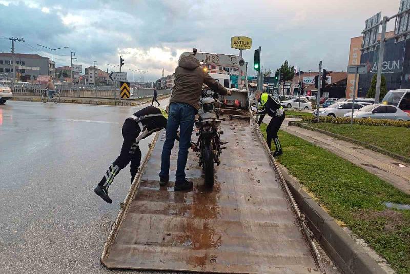 Düzce’de uygulama yapan ekiplerce durdurulan motosikletin sürücüsünün ehliyetsiz olduğu belirlenirken, plakası ise sahte çıktı.