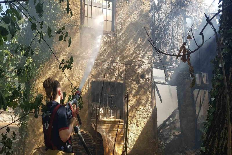 İnceleme başlatılan yangın nedeniyle iki katlı ev kullanılmaz hale geldi.