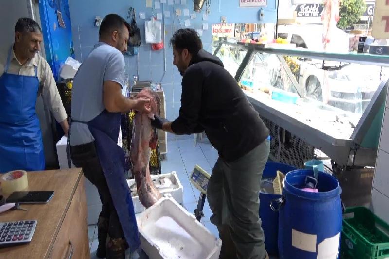 Yayın balığı, kısa süre tezgahta sergilenmesinin ardından parçalanarak sofralarında yemek isteyen balık tutkunlarına satılacak.