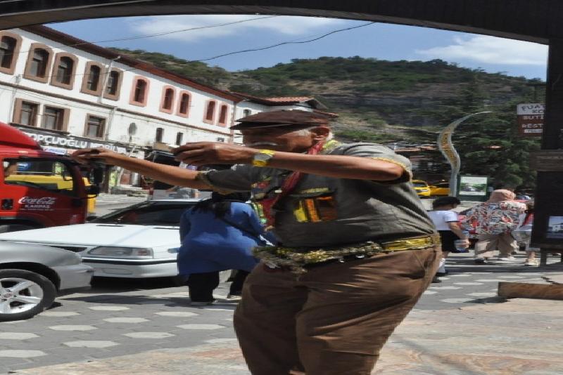 Bolu’nun Mudurnu ilçesinde kendine özgü kıyafetleriyle dikkat çeken Durmuş Demirtaş, bir elinde teyp diğer elinde şimşir kaşığı ile sokak sokak oyun havası oynuyor. Güler yüzüyle herkesin sevgisini kazanan Demirtaş adeta vatandaşların neşe kaynağı oluyor.