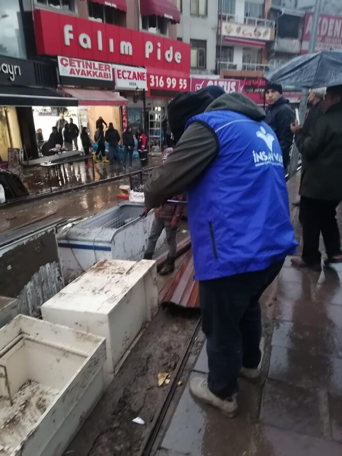 Kdz. Ereğli Ümmet Platformu paydaşlarından İnsan Vakfı da “Önce İnsan” sloganıyla çarşıda selin olumsuz etkilediği esnafları ziyaret ederek hasar tespitinde bulundu, küçük esnaflara destek ödemesi gerçekleştirdi.