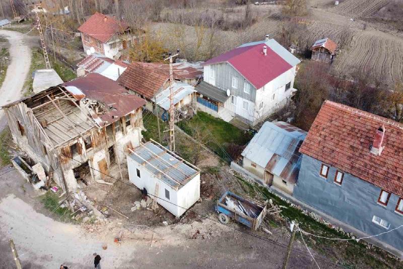 Köye getirilen konteyner, vinç yardımıyla rüzgardan hasar gören evin bahçesine konuldu. Konteynerin yağmur ve karda üzerinde hasar görmemesi için üzerine köylülerin yardımıyla çatı da yapılıyor.