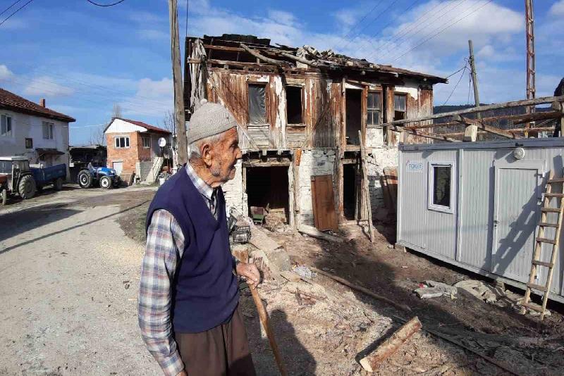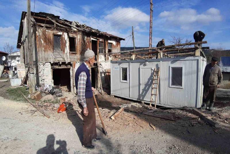 Bolu’da aile yadigarı ahşap evinin çatısı fırtınada uçtuğu için camide misafir edilen 90 yaşındaki İrfan Yazgan için konteyner hazırlandı. Konteyner Yazgan’ın ahşap evinin bahçesine konuldu. Büyük mutluluk duyan yaşlı adam, “Eski evimin çatısı uçmuştu. Şimdi ise yeni getirilen konteynere komşularım çatı yapıyor. Daha sonra da eşyalarımızı taşıyacağız. Allah herkesten razı olsun” dedi.