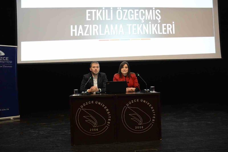 Düzce Üniversitesi Kariyer Geliştirme ve Mezun İzleme Uygulama Araştırma Merkezi ile İŞKUR’un iş birliğinde düzenlenen “Etkili Öz Geçmiş Hazırlama Teknikleri” adlı söyleşide, öğrencilere işin uzmanları tarafından dikkat edilmesi gerekenler anlatıldı.