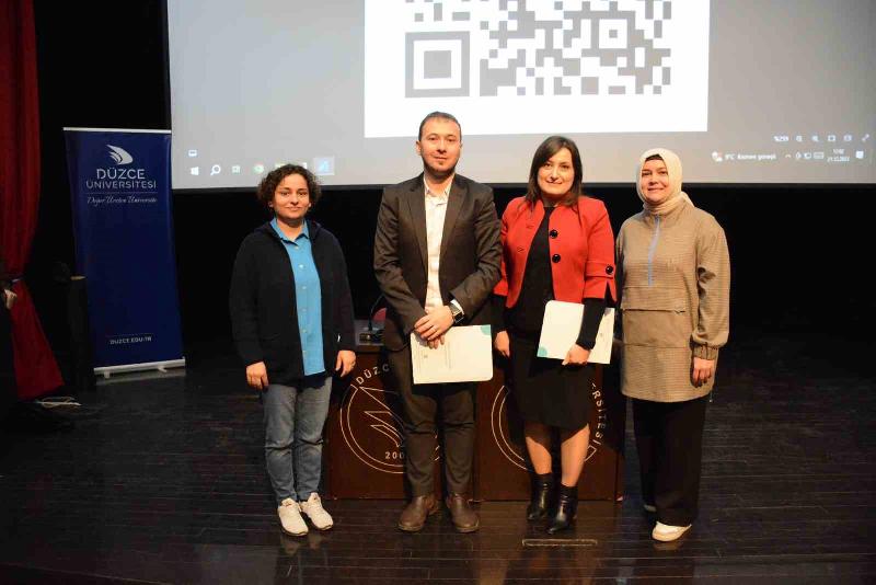 Söyleşi sonunda yaptıkları başarılı sunum ve çalışmaları için konuşmacılara Düzce Üniversitesi Kariyer Geliştirme ve Mezun İzleme Uygulama Araştırma Merkezi’nden Öğretim Görevlisi Dr. Yasemin Olğaç Akar ve Öğretim Görevlisi Zeynep Kömür tarafından teşekkür belgesi takdim edildi.
